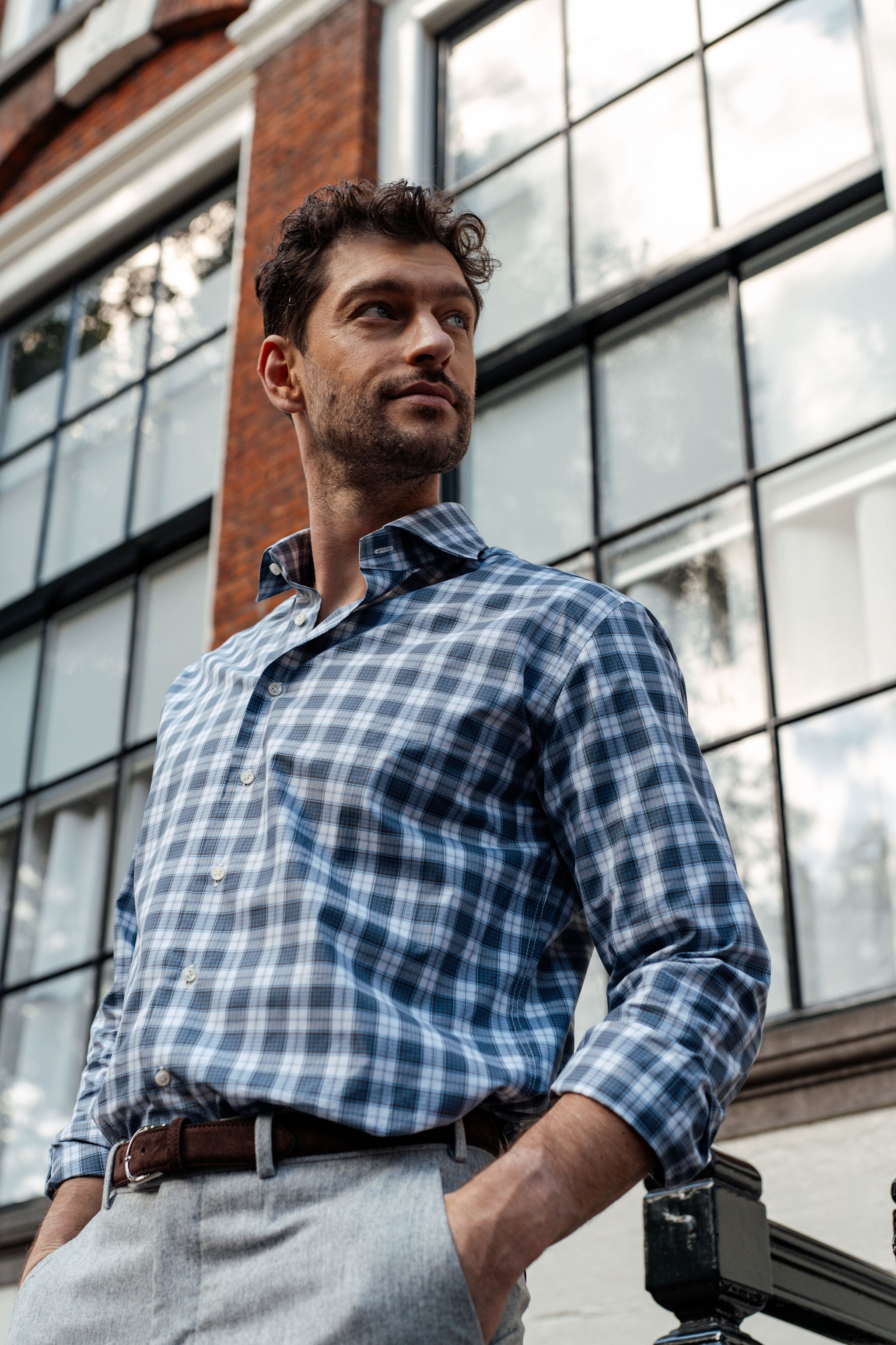 Classic Fit Karo Blau